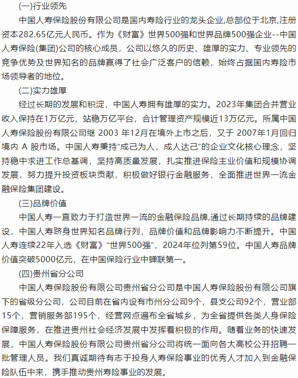 中国人寿保险股份企业贵州省公司2025年秋季高校招募公告