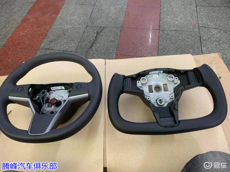 这是拆下来的特斯拉原厂方向盘VS改装Yoke方向盘。
