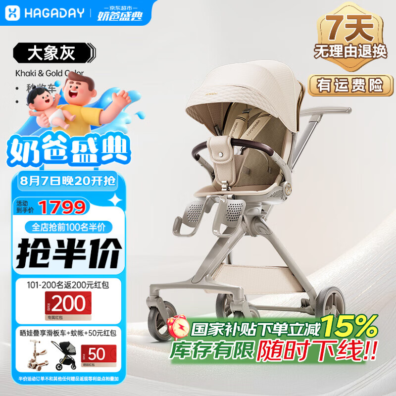 推荐第七款:哈卡达悦行遛娃利器,轻巧便携,可折叠,高景观设计,兼具坐卧功能,适合推婴儿使用,哈卡达悦行轻便折叠高景观婴儿车
