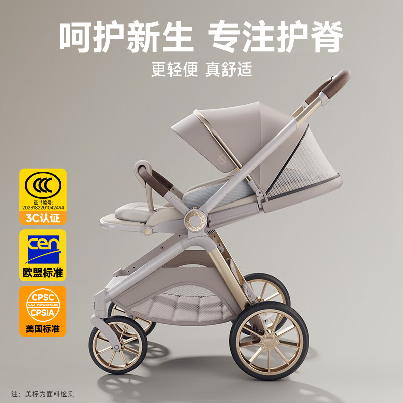 这款推车的舒适体验有了显著提升,它的构造非常周到,细节处理令人满意。坐垫部分采用了20毫米厚的提花透气材质,触感如云朵般柔软,无论是坐着还是躺着都非常安逸。车架支持双向175度平躺,这样宝宝在进食时不容易发生呛奶的情况,考虑得相当周全。此外,它还具备高景观功能,座椅高度达到50厘米,能够帮助宝宝拥有更开阔的视野,看到周围环境的变化,从而提升他们的心情。