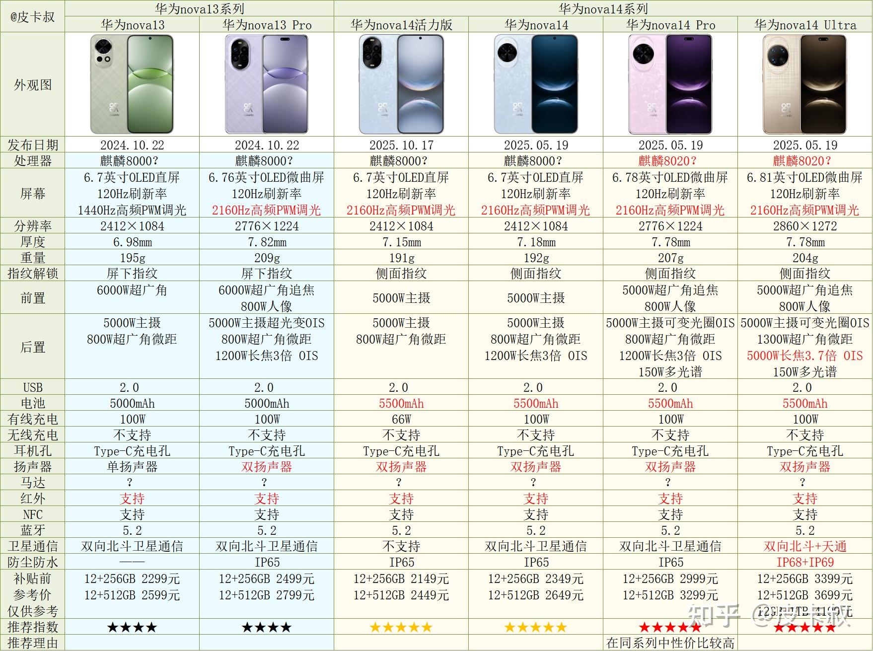 最新变动:已加入十月十七日推出的华为nova14活力版机型,已加入六月十一日推出的华为Pura80系列机型,已加入五月十九日推出的nova14系列机型。