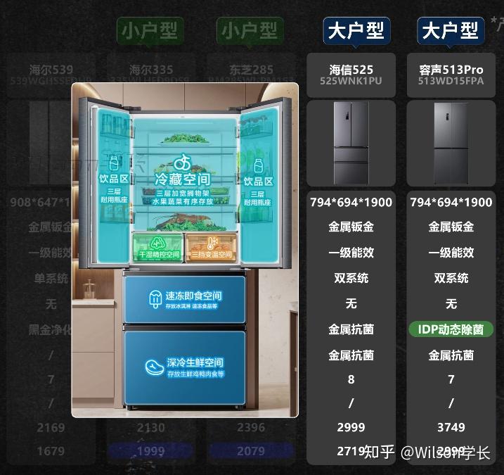 若你是大户型,海信525是不错选择,容声513Pro也是,两款各含优势,容声513Pro优势是冷藏室主动除菌,海信525优势为法式四门分区,从真正使用角度讲,我更建议优先看法式四门的海信525,3000以内很难再找到比它还便宜的双系统法式四门冰箱;