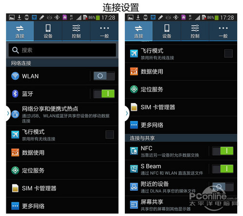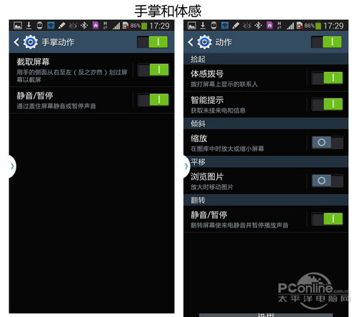 在控制选项的情形之下,存在着各种各样GALAXY Note3所具备的功能,基本上将GALAXY系列拥有的一些特色体感、别出心裁的手势等方面的功能予以集成,其功能丰富程度超乎寻常。