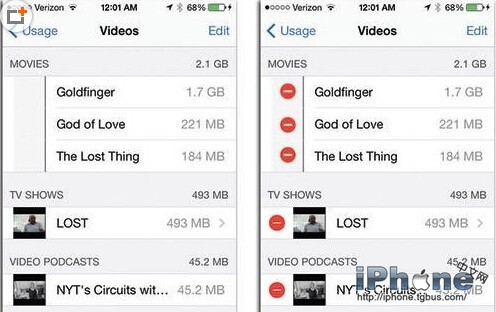 要是点击右上角那个用来编辑的按钮,便会出现呈现为红色的删除按钮,就如同上图右侧所展示的图片那样,现在你能够着手去腾出一些空间了。