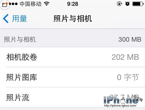 此列表呈现出相机胶卷、照片图库以及照片流各自所占用的空间量,然而,它没办法进行单独删除操作。删除照片最为快捷的方式乃是连接至iTunes,将照片进行导入,随后实施删除。