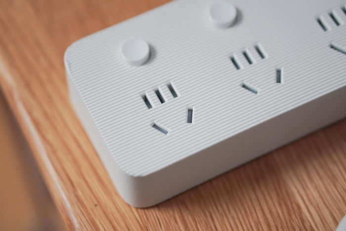这款插线板的插孔间距达到了42mm,它适用于多种插头,然而像笔记本电脑那种较为笨重的插头或许就没法放置了,所以建议能够专门制作一个大孔距的插线板版本。
