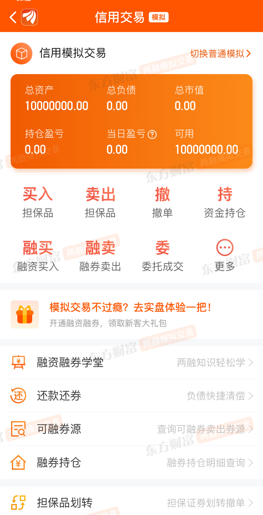待所有事备准项都妥排安当之后,小编议提您不妨参行先与两融交拟模易,以供拟模的资额数金为一千万,从而让够能您全位方地去体易交会里面含蕴所的乐趣。