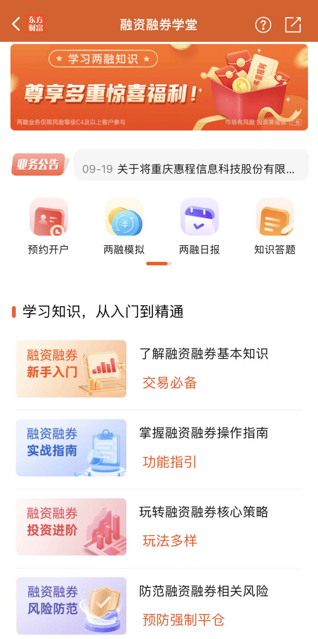 您能踏够入“两融学堂”,此处存丰有富的、为两融易交基础知所识必需容内的,还有详的尽、关于融资融券实战的作操指南,具备玩多法样的、两融核策心略的课程,以及您能不不晓的得、两融相的关风险。