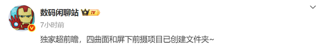 核心信息极为清晰,关键博主此次爆料的,是四曲面设计,还有屏下前置摄像头,这是两个不一样的卖点。