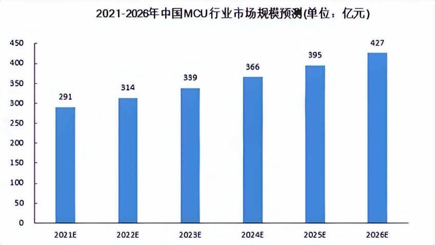 在未来的几年当中,我国的MCU市场呈现出发展较为快速的态势,预计到2026年的时候,其规模能够达到427亿元左右。