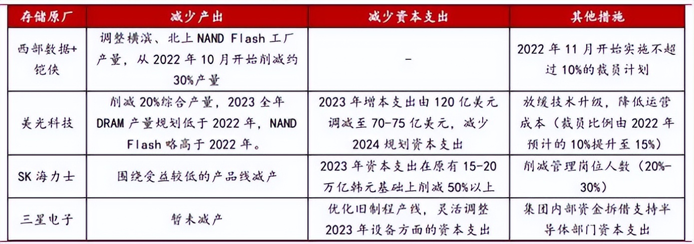 为了缓解库存,几家主要的存储芯片原厂,先后推行减产策略,实施了降价举措,还采取了减少开支等办法。