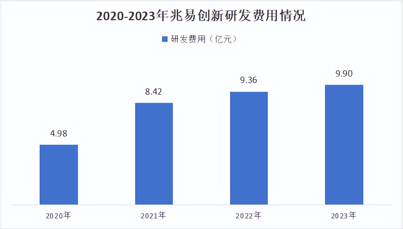在2020年开始,一直到2023年期间,兆易创新的研发投入,是从4.98亿元,增长到了9.90亿元。