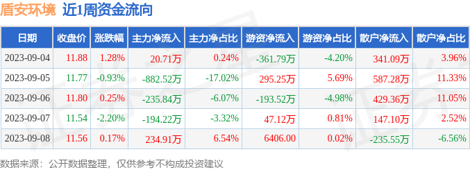 在资金流向数据这个范畴之内,于本周的时候,针对于盾安环境它的主力资金,总计净流出这一情况是1056.97万元,而游资资金总计净流出的额度为212.3万元,至于散户资金总计则是净流入了1269.27万元。本周其资金走向的整体情况展示可见下面这个表格: