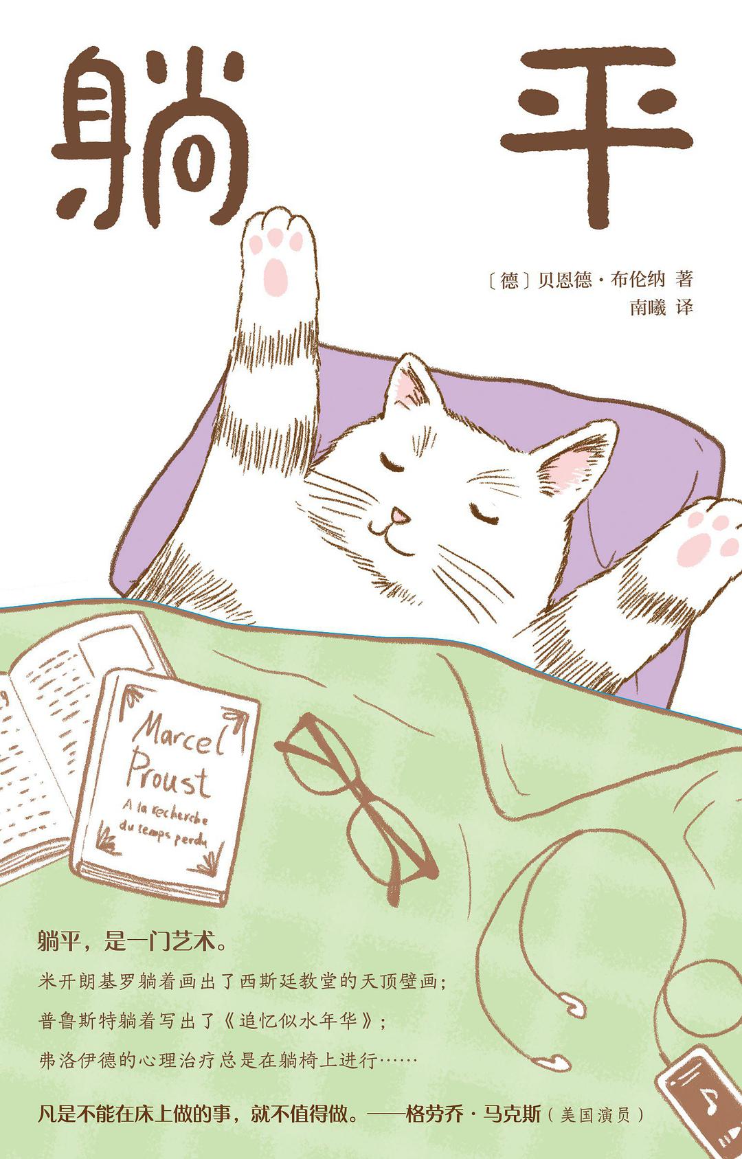 卧着的人常被看作是怠惰消极的。在力争上游、光阴如金的今天,躺着歇息这种本能的动作,仿佛变成了为了补充体力而不得不去完成的任务,因此卧着的时间应当尽量压缩。德国作家贝恩德·布伦纳通过《躺平》一书为卧倒行为进行申辩,试图让人们能够心安理得地躺着休息;人们似乎已经遗忘了怎样正确地躺下,这就像总是吃速食餐点已经忘记如何烹饪一样;而躺卧休息的意义,并不仅仅是为了之后能继续工作,或者仅仅是为了恢复身体机能,它还包含着其他更深层的目的,不该被简单地理解为回到书桌前继续劳作。