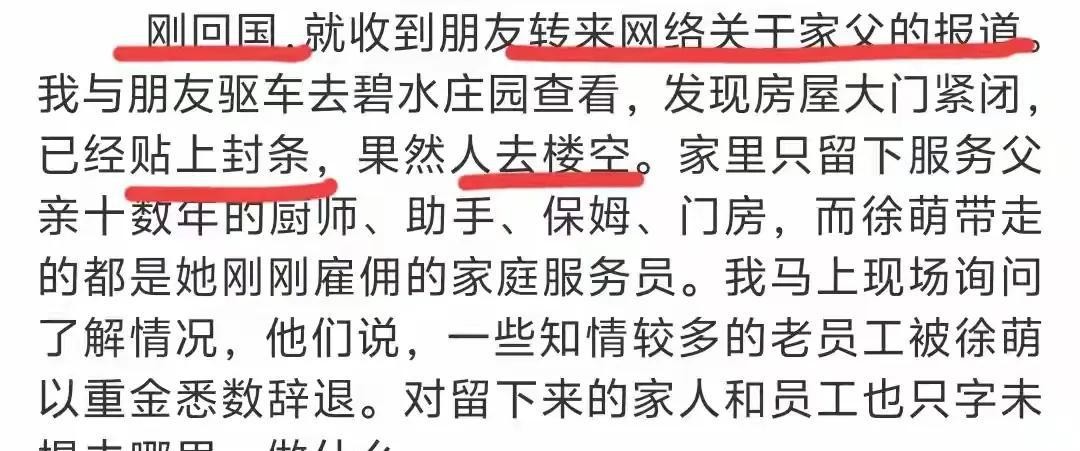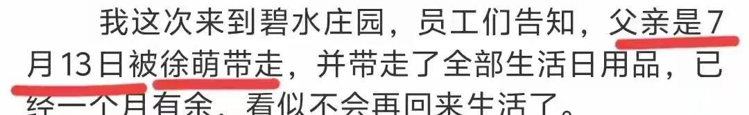 范晓蕙系范曾独女,她率先撰文表明立场:范曾在七月十三日遭徐萌“领走”,其电话始终无人接听,即便想联系徐萌,也屡屡受挫。家仆更被高薪解雇,即便普通员工亦被恫吓,情形颇为凶险。