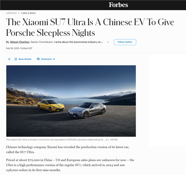 小米SU7 Ultra在国内广受欢迎,同样也吸引了国外的目光,美国不少媒体都对小米SU7 Ultra给予了非常高的评价。