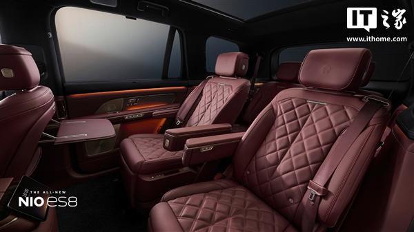 IT之家发现,根据官方图片显示,全新蔚来 ES8 的内部设计理念与蔚来旗舰座驾 ET9 非常接近,整体呈现奢华典雅的气息。车厢中设置了 Skyline 天际线屏幕、悬浮式仪表盘以及最新迭代版本的 NOMI 系统,彰显出浓厚的科技氛围。方向盘维持了三辐式造型,而车载信息娱乐系统主屏幕也从纵向布局改为横向格式。前排座椅控制按钮已经移到车门面板上,这样做是为了符合高端轿车的风格。新公布的酒红色内饰,与直纹滚花工艺的飞行控制面板、缎面拉丝工艺的亮光装饰条等元素相结合,共同打造出一种优雅大气的氛围,让人一进入车内就能感受到其不凡的档次。