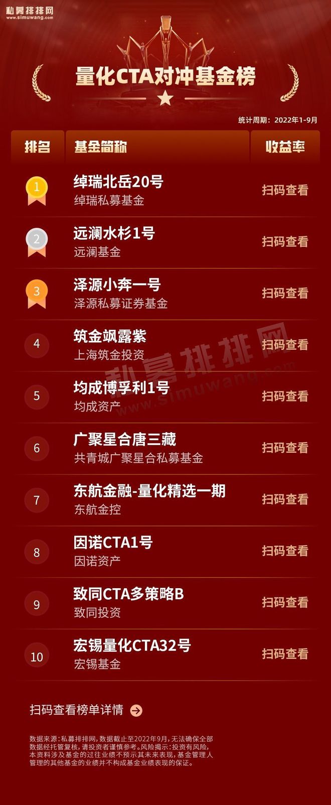 信息源自私募排排网,统计截止于2022年9月。依据管理人最新提交的资料,该基金运作期间的资产总值超过五百万元。选取在2022年9月时点计算的单位净值,并且产品表现信息公开等级为A的基金纳入此次评级。