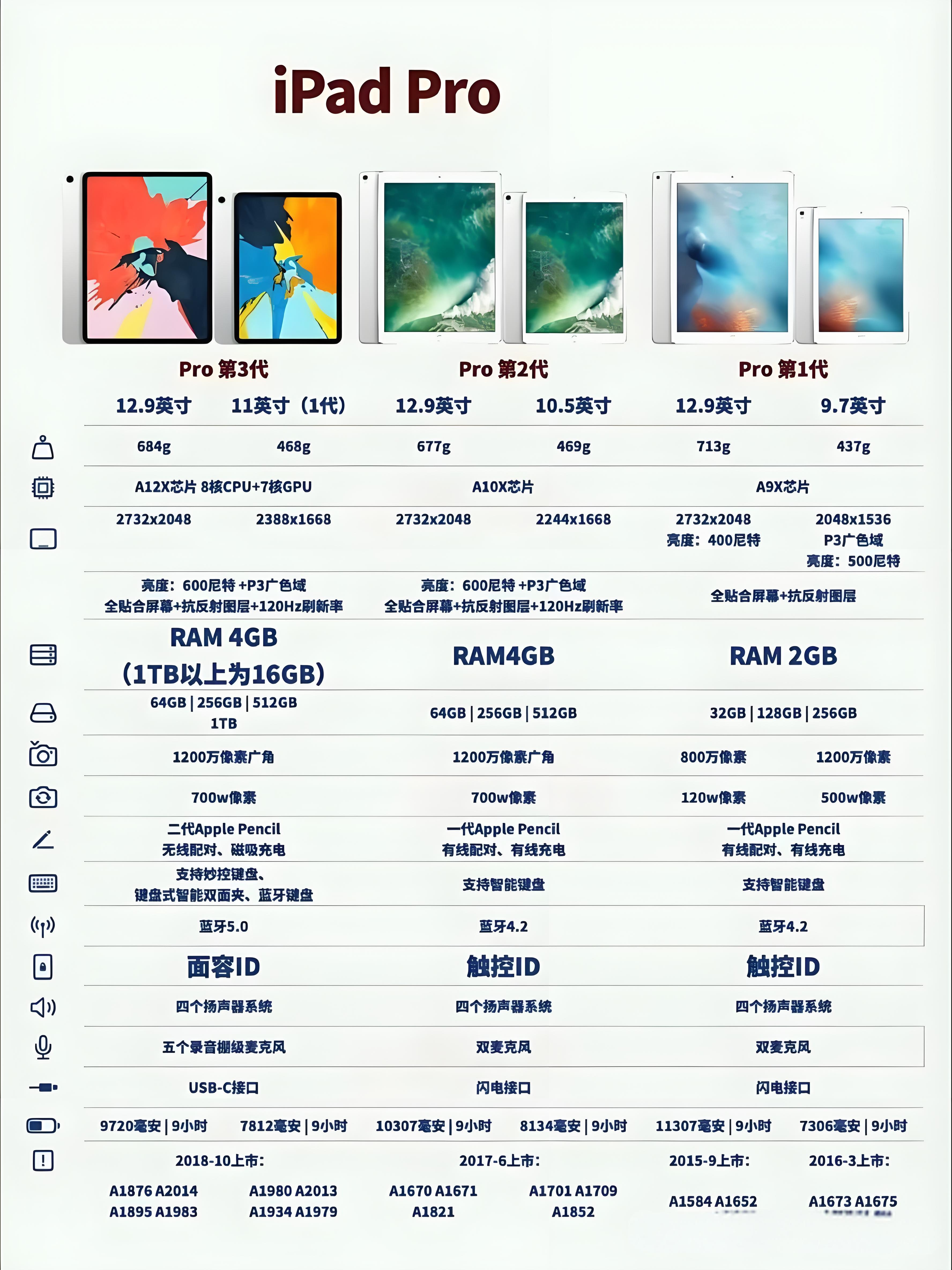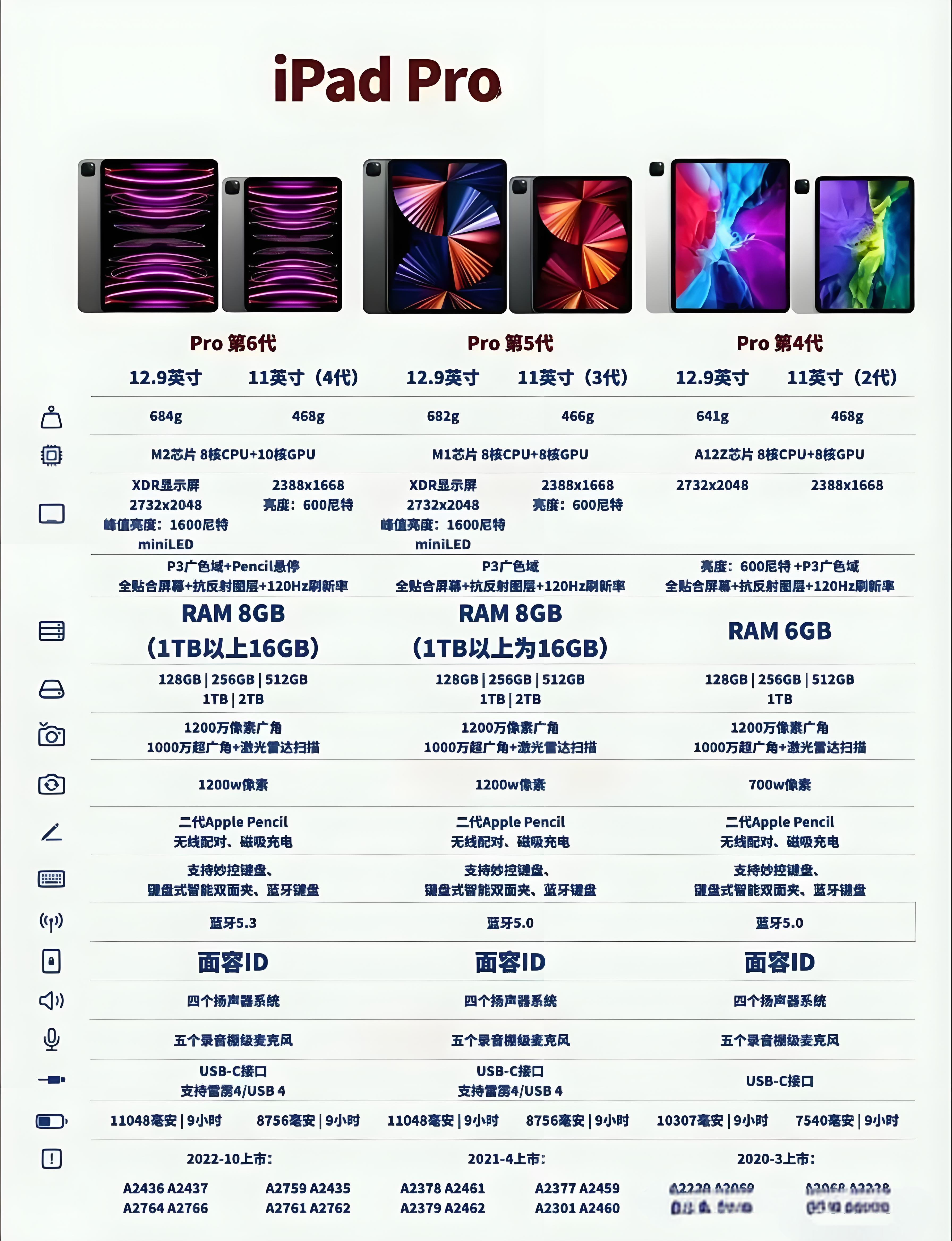 自 2015 年面市至今,苹果持续不断地对 iPad Pro 系列的多种版本进行迭代升级。
