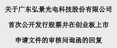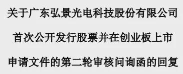 二零二三年六月二十六日,弘景光电首次公开发行股票申请被深圳证券交易所接收。二零二三年七月十六日,深圳证券交易所向弘景光电发出第一批审核问询文件,二零二三年九月二十八日,深圳证券交易所又向弘景光电发出第二批审核问询文件,这两份文件均已被弘景光电处理完毕。