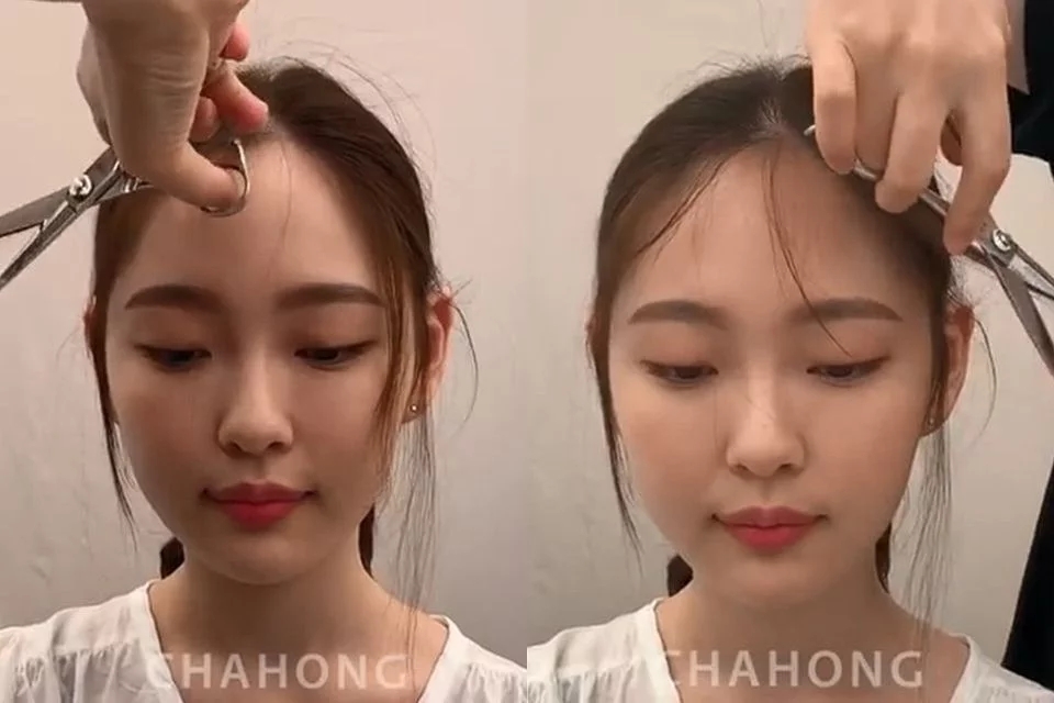 此外前额正中的发际线高度,需参照前发际线或眉头的界限来决定,这样修剪出的碎发才能融入前发之中,显得更为协调。