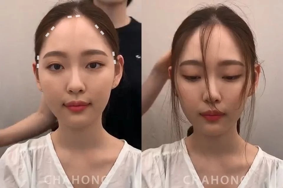 >>小脸碎发关键:刚好盖过原本的发际线