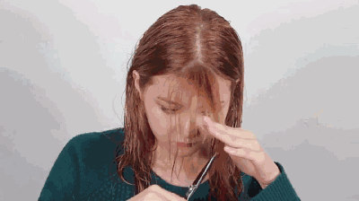 Step3:以中间剪好的刘海为标准,依次递减处理其他部分。