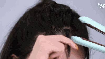 先用手指将额头前的头发分开,接着取一小部分刘海,用卷发钳在靠近头皮的位置,小心地卷出一个弯曲的形状。