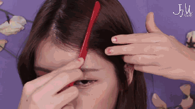 Step1:先用梳子梳出刘海,刘海分量呈现小倒“V”型。