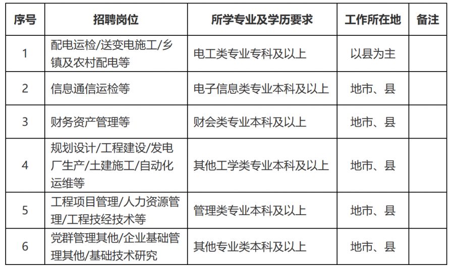 本公司2024年第二期招募方案预计招收约500名员工,实际录用人数会依据上级机构的审批结果以及申请者的背景资料、首期签约状况进行适当变动。所有岗位所需的专业均指学历教育中的主修学科,并不涵盖第二段学习经历或获得的学位。专业认定需参照学籍核实文件,而专业分类则按照国家电网集团的招募平台分类标准执行。详细需求内容如下: