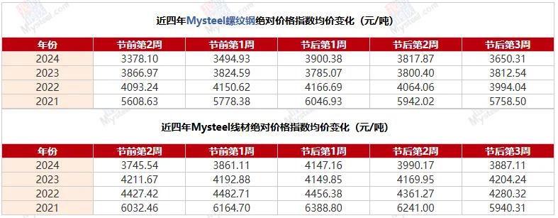 图表1:近四年Mysteel螺纹钢、线材绝对价格指数