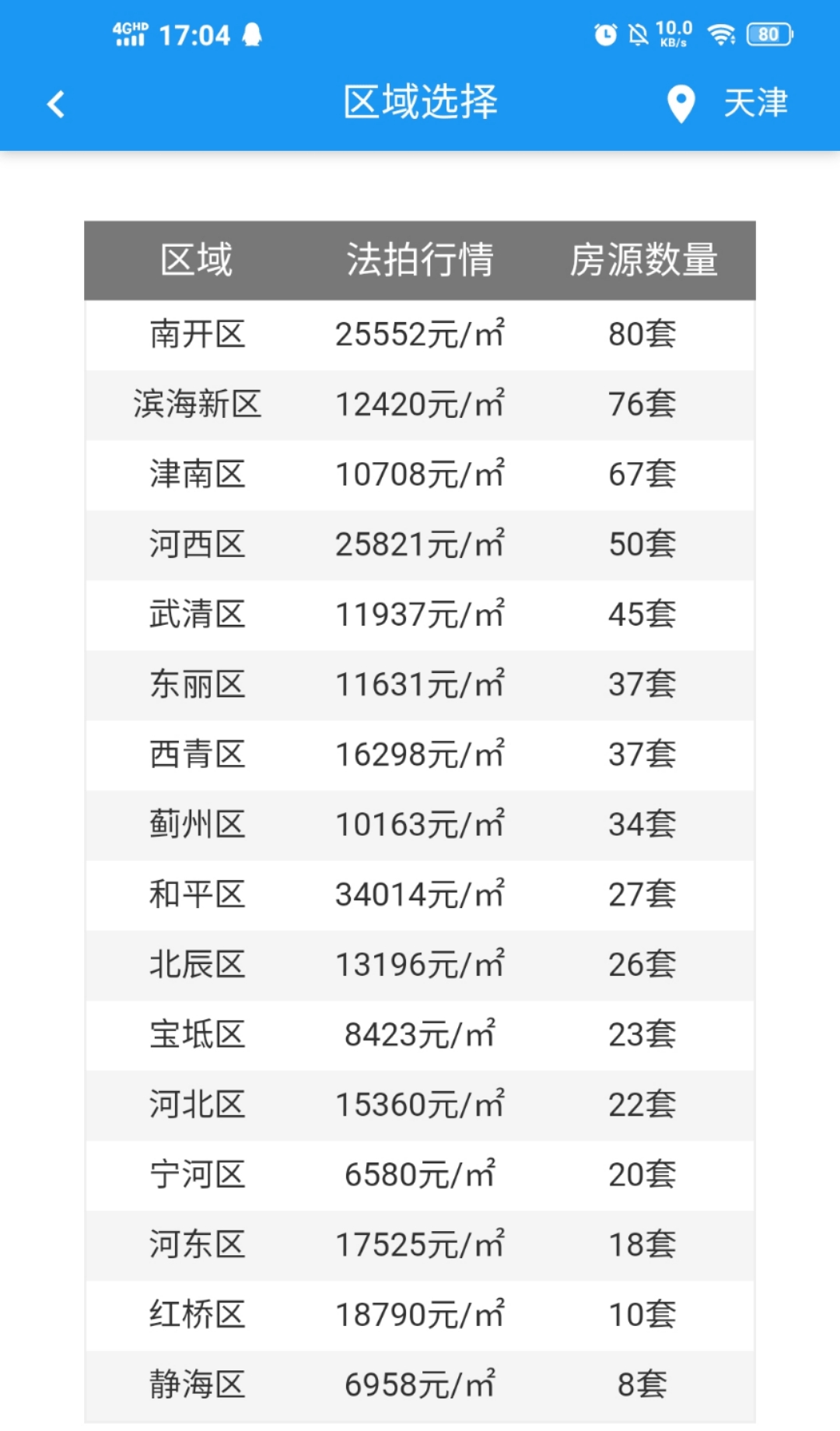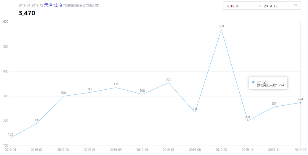 图4 展示了天津市2019年参与司法拍卖的房产竞标者数量,信息源自海豚选房应用程序