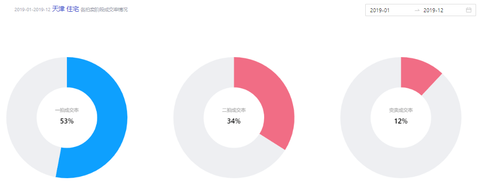 图3 展示了天津市2019年司法拍卖的各类住宅在不同环节的成功交易比例,这些信息由海豚选房应用程序提供。