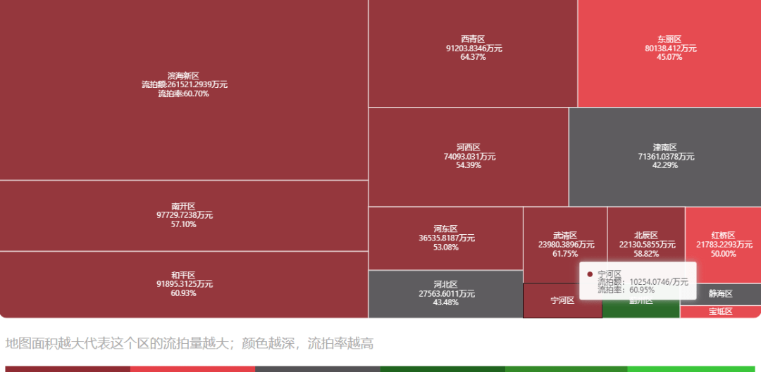 图10 展示了天津市2020年各个行政区房产拍卖未成功案例数量,信息源自海豚选房应用程序