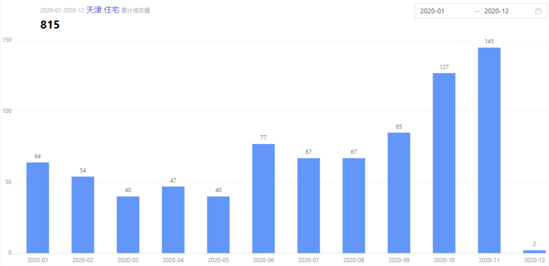 今年截至现在,天津司法拍卖的住房总共售出815套,如图6所示,这个数据与上一年相比基本持平,毕竟2020年还没有结束。