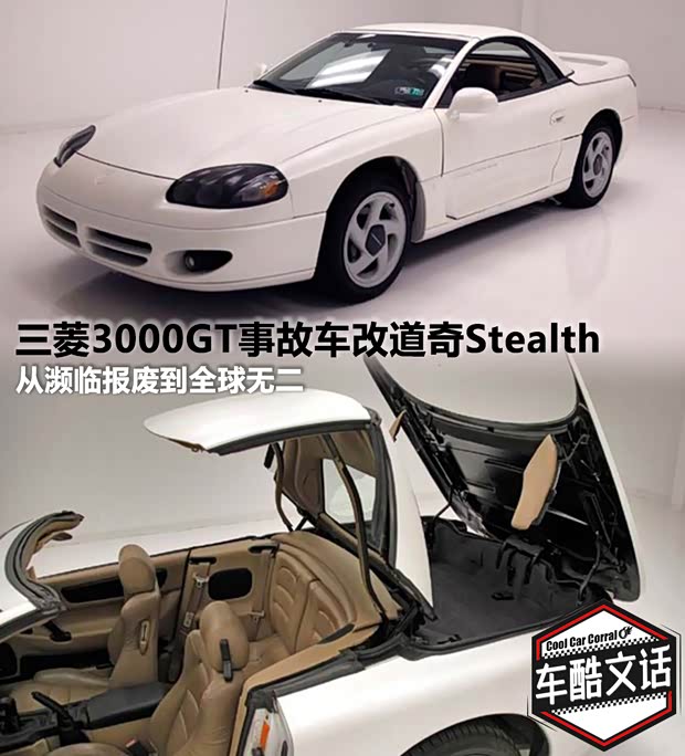 前不久我做了个梦,梦见一辆三菱3000GT(参数|)遭遇了严重的追尾事故,我把它买了回来准备制作《逆時光》修复节目,随后直接将它改造成了3000GT旅行版,当时我还曾在文化团队的微信群里提起这件事,尽管当时没有人回应,但就在今天突然出现了一则新闻,说的是国外有辆3000GT在发生事故后,被改成了敞篷版的道奇Stealth
