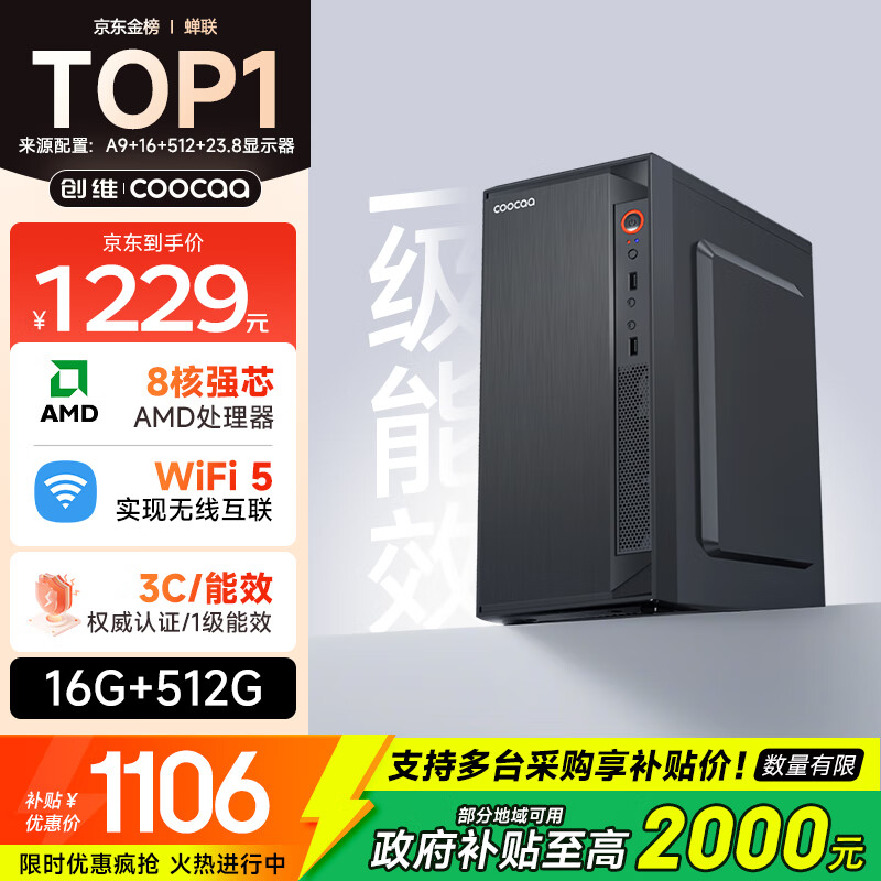 【京东自营】酷开创维电脑八核主机办公商用台式机电脑