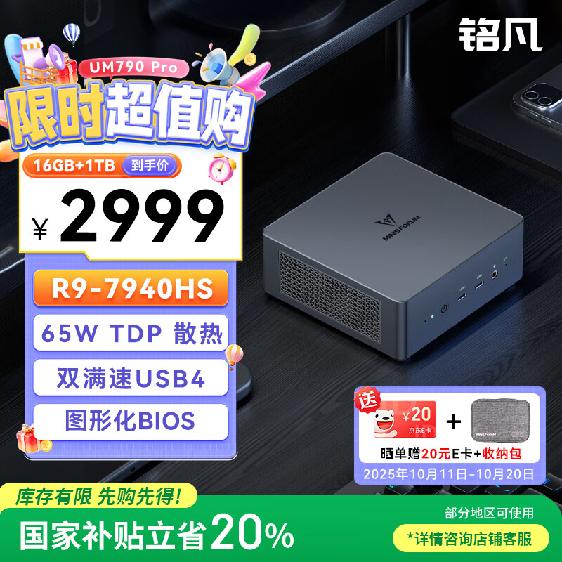 【京东自营】铭凡国家补贴百分之二十UM790PRO锐龙R9-7940HS迷你主机性能优秀mini主机体积小巧迷你电脑