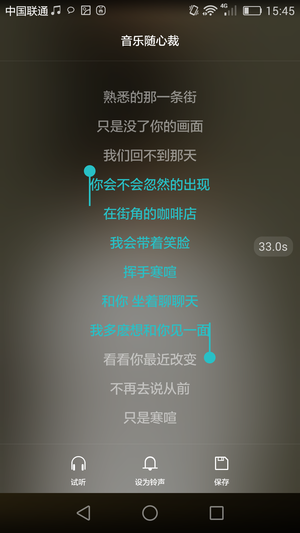 此外,音乐随心裁功能,对用户而言,是很棒的功能。在音乐播放的歌词界面,长按屏幕可进入随心裁功能,借助这项功能,能随心所欲把喜欢的部分音乐裁剪下来,用作自己手机铃声。