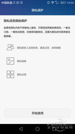 有一种被称作“访客模式”的,由EMUI 3.1提供的,简单有效的解决方案,简而言之,经过两套屏幕解锁密码,会进入正常模式,还会进入访客模式,在访客模式下能隐藏图片,并且能隐藏联系人,也能隐藏应用程序。