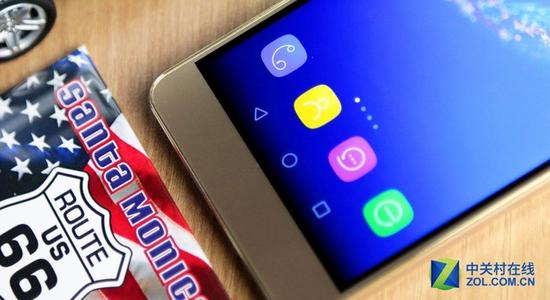 它正面顶部开孔较为中规中矩,前置 500 万像素镜头处于传感器与听筒中间,未采用对称式设计,所以美观度稍差,底部采用设于屏幕内的三颗触控安卓导航键,近两年华为推出的手机,无论旗舰产品还是千元机,这种按键设计已较普遍 。