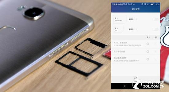 手机右侧边框上面设计的是它的音量键与电源键,手机左侧边框上面设计的是卡槽。畅玩5X支持双卡,它有两个卡槽,靠上的那个卡槽支持的是Micro-SIM卡,靠下的那个卡槽是Nano-SIM卡托与TF卡托,TF卡托最大128GB。值得一提的是畅玩5X的双卡没有区分4G与2G网络,在系统双卡设置里你能够对两个卡槽进行软切换。