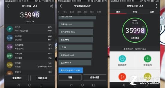 刚开始先针对安兔兔V5.7展开测试,最终得出的35998分之所得结果符合我们事先所思预料,跟市面上那些旗舰类型产品相比较而言,存在着性质上比较大的性能方面的差距。然而3GB大小的运行内存显著地将这款机器的多任务运行能力予以提升,在处理器这一方面,绝大多数的规模处于中等偏大的游戏均可实现比较良好的运行状态 。