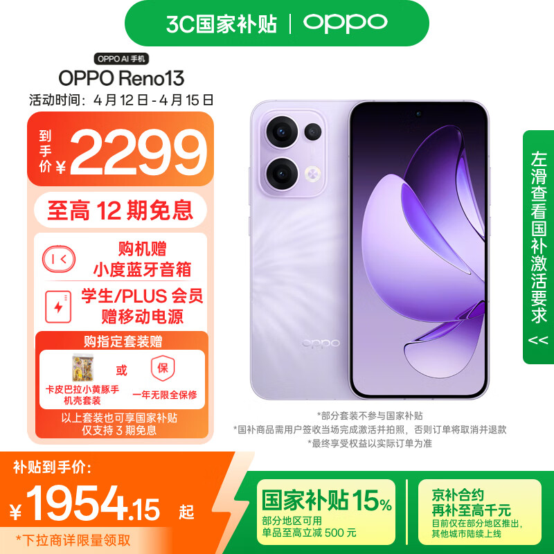 OPPOPPO Reno13啊,有着12GB加上256GB存储容量的配置,呈现蝶蝶紫这一颜色,屏幕那真是超美得小直类型屏幕,还有AI实况功能,具备IP69满级防水特性,适用于学生游场景 。