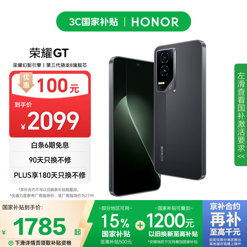 新款荣耀GT,荣耀第三代骁龙8动力幻影引擎,荣耀AI绿洲护眼电竞屏配置为12加和256的容量,拥有幻影黑外观,支持5G还有着AI功能 。