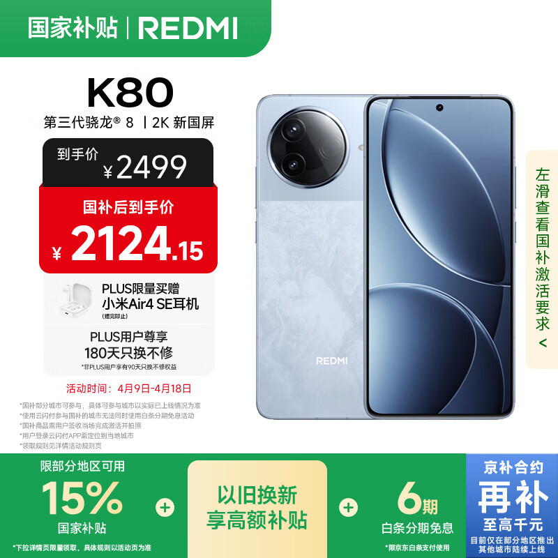 小米推出的 REDMI K80,搭载第三代骁龙 8,配备 6550mAh 大电池,运行澎湃 OS,拥有汐月蓝外观,内存为 12GB 且存储为 256G 。