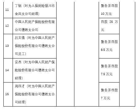 于此同时,中国人民财产保险股份有限公司银川分公司,因“编制虚假资料”这一情况,被处以50万元罚款。该公司在宁夏地区的多家分支机构,以及相关工作人员,因“利用保险代理人以虚构保险中介业务方式套取费用”等些问题,受到处罚,其中涉及银川市兴庆支公司、金凤支公司、德胜支公司等多家分支机构,累计共罚金额超过200万元。
