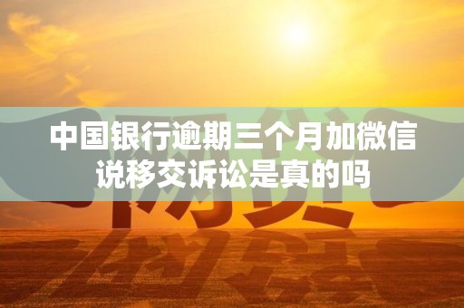 存在这样的情况,一些借款人表示,在逾期三个月之后,收到了“银行工作人员微信”的相关信息,称会移交诉讼或者发送催收通知。然而,实际上,此种做法是存在隐患的。其一,正规的银行在进行催收时,会采用官方渠道,基本不太可能常常通过私人微信添加借款人来展开沟通。其二,有不法分子存在冒充银行工作人员的可能性,利用微信对借款人实施诈骗行为。对于“银行逾期三个月加微信说移交诉讼是真的吗”这个问题,得结合实际情况来看,要是并非官方认证的账号,那么极有可能是假冒行为,所以应当保持警惕,千万不要直接向陌生微信透露个人信息或者进行转账 。