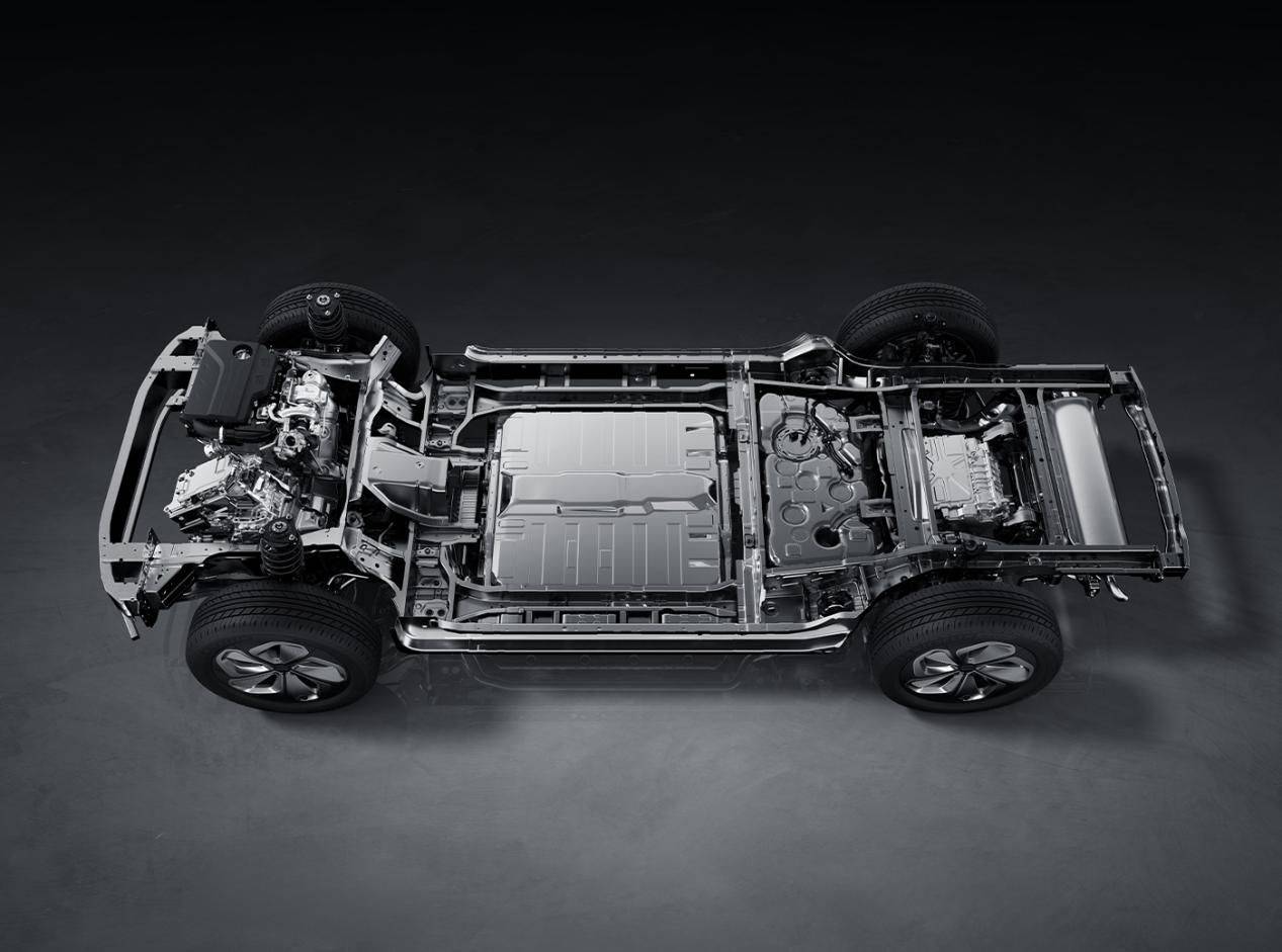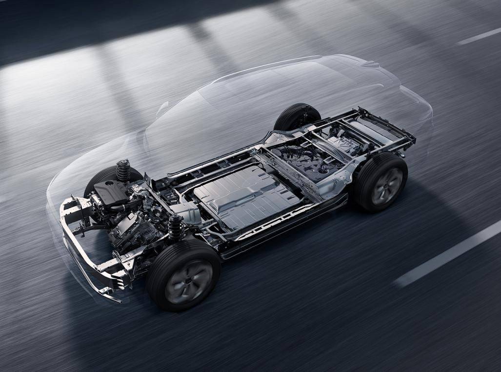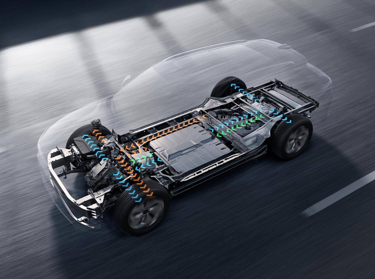 去深入剖析这套动力系统,其中三电机的构成是,集成于插混变速箱壳体内的两个电机,再加上放置在后轴的驱动电机。实际上发挥驱动作用的是,混动变速箱内的动力电机,以及后轴的单独驱动电机。而正是由于它实际存在前轴和后轴各有一个驱动电机的布局,所以,这台车能够达成真正的“全时四驱”。