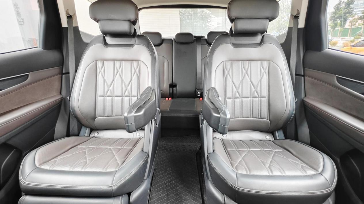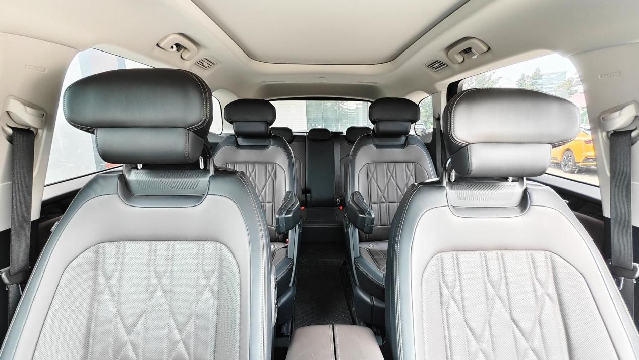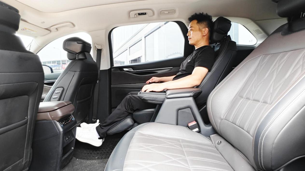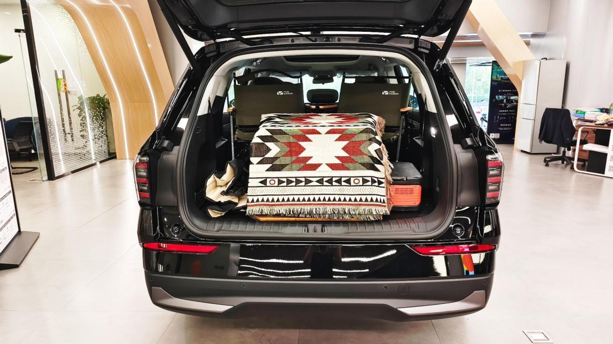 二排有悬浮座椅,带有190mm滑轨以及腿托,一键零重力模式能使乘客瞬间进入云端躺姿,只是200mm宽通道简直如同MPV一般,前往第三排时就像走在平地上那样轻松。后备厢空间如同有着魔术师般的手法:满员时有着309L可以用来装日常行李,将第三排座椅放倒后能飙升至969L,可容纳露营装备,完全放倒后2876L就变成了移动仓库,哪怕是婴儿车以及大件家具都能轻松装下,对喜欢露营且家庭成员众多的朋友说来堪称是福音。第三排拥有256mm膝部空间,这一空间比汉兰达的200mm要大,能彻底摆脱“伪三排”的尴尬状况。